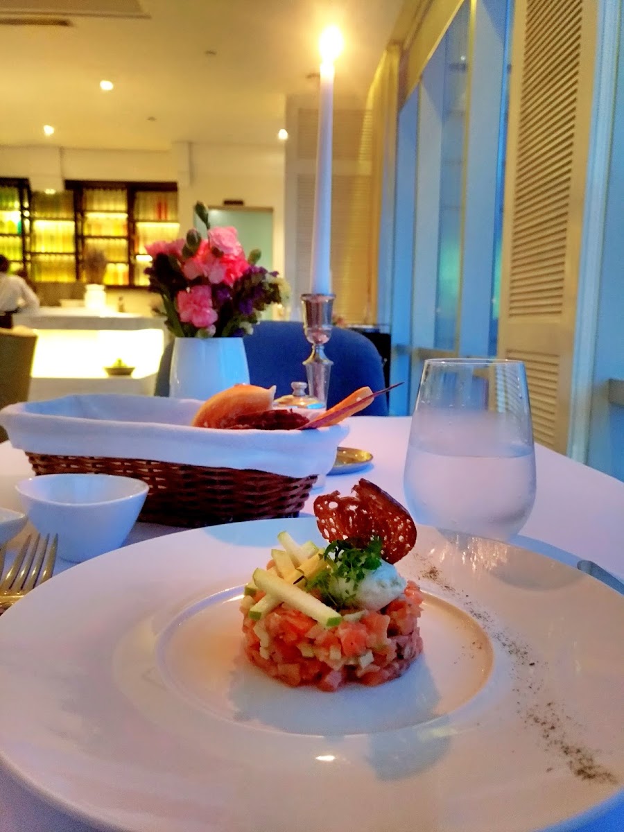 We availed the 4-course lunch set, and for P2800 each, it was well worth it! The servings were very generous, and as much as I wanted to finish the dessert, I was already too full! (we even got a complimentary cake because it was my boyfriend's birthday). Both the starters (Mediterranean Tuna Salad and Warm Goat Cheese Salad) were nice and fresh. However, for the soups, I preferred the Roasted Zucchini Soup more than Soupe de Poisson. Soupe de Poisson was too salty for my liking. The Beef Tenderloin was cooked perfectly. The Apple Tarte was one of my favorites! While I do liked the Coconut Chocolate Mousse, the chocolate shell was too difficult to eat because of its hard consistency. Overall, I have nothing bad to say about the quality and taste of the food, while there were really no "complex" flavors, the simplicity of the food makes it all the more palatable. The service was also highly commendable— I had so many questions about their available coconut-based cocktails and so many requests with their available black tea, but all of it were met by welcoming accommodation by their staff. Shoutout to Miss Berlyn for being incredibly patient and warm! We will definitely come back!